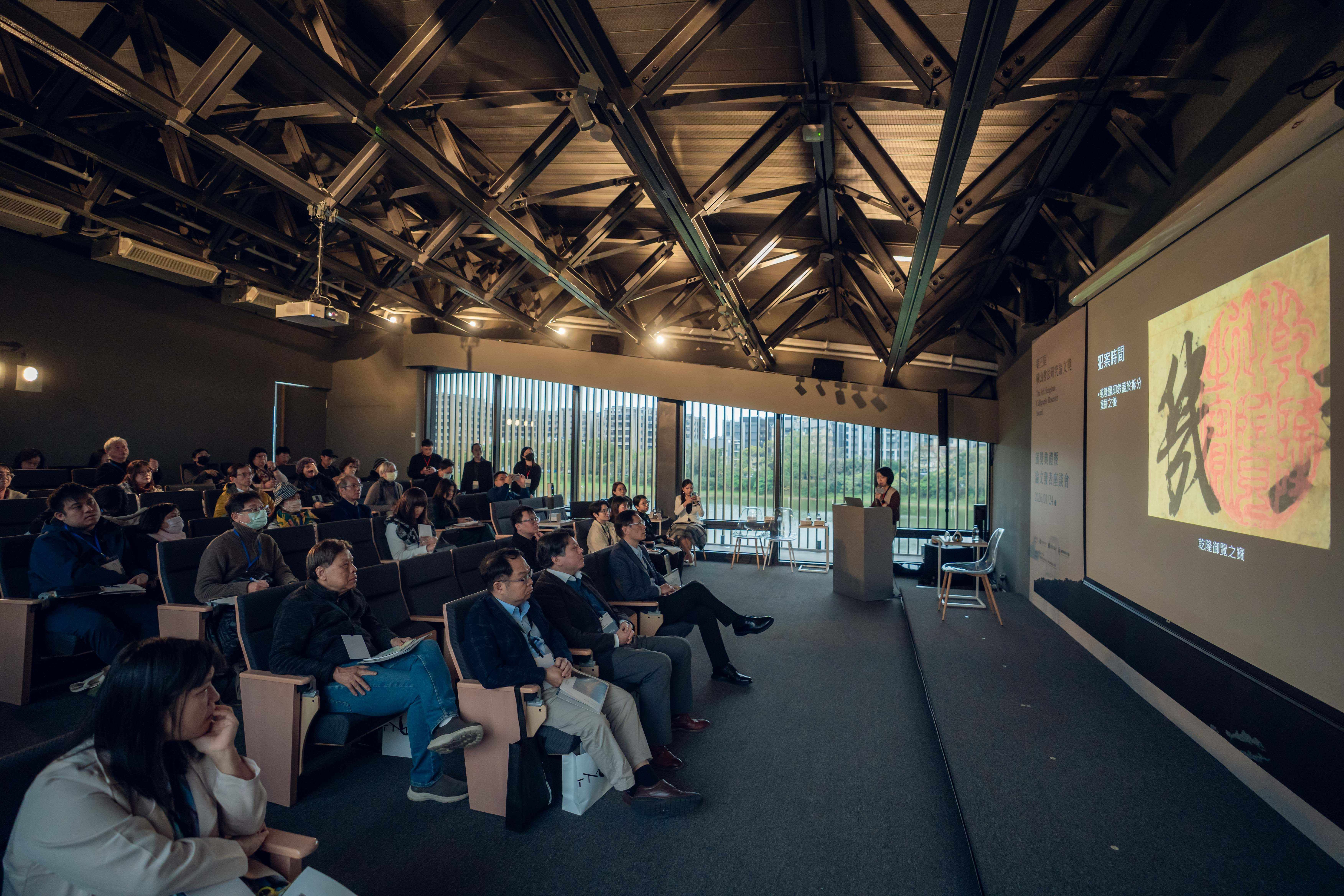 本屆「論文獎」邀集來自日本、中國、香港及臺灣共7位專家學者組成國際評審團,經兩階段嚴謹評選,共選出3篇優秀論文。最大獎「橫山研究獎」,首獎獎金新臺幣15萬元,由臺灣簡欣晨以「康熙皇帝的集字活動──從幾件董其昌(款)〈古詩十九首〉談起」獲獎,以宏觀歷史視角與嚴謹文獻考證,探討康熙皇帝集字行為與董其昌書風的關聯,並透過材料與裝裱分析,揭示清代書法與皇權文化交織的歷史脈絡,展現深厚的學術深度。與談人國立故宮博物院書畫文獻處處長何炎泉肯定獲獎者勇於挑戰,以不同以往的研究視角推翻康熙書法的傳統定論,也鼓勵年輕學者持續以創新視角挖掘書法史中未被揭露的真相。