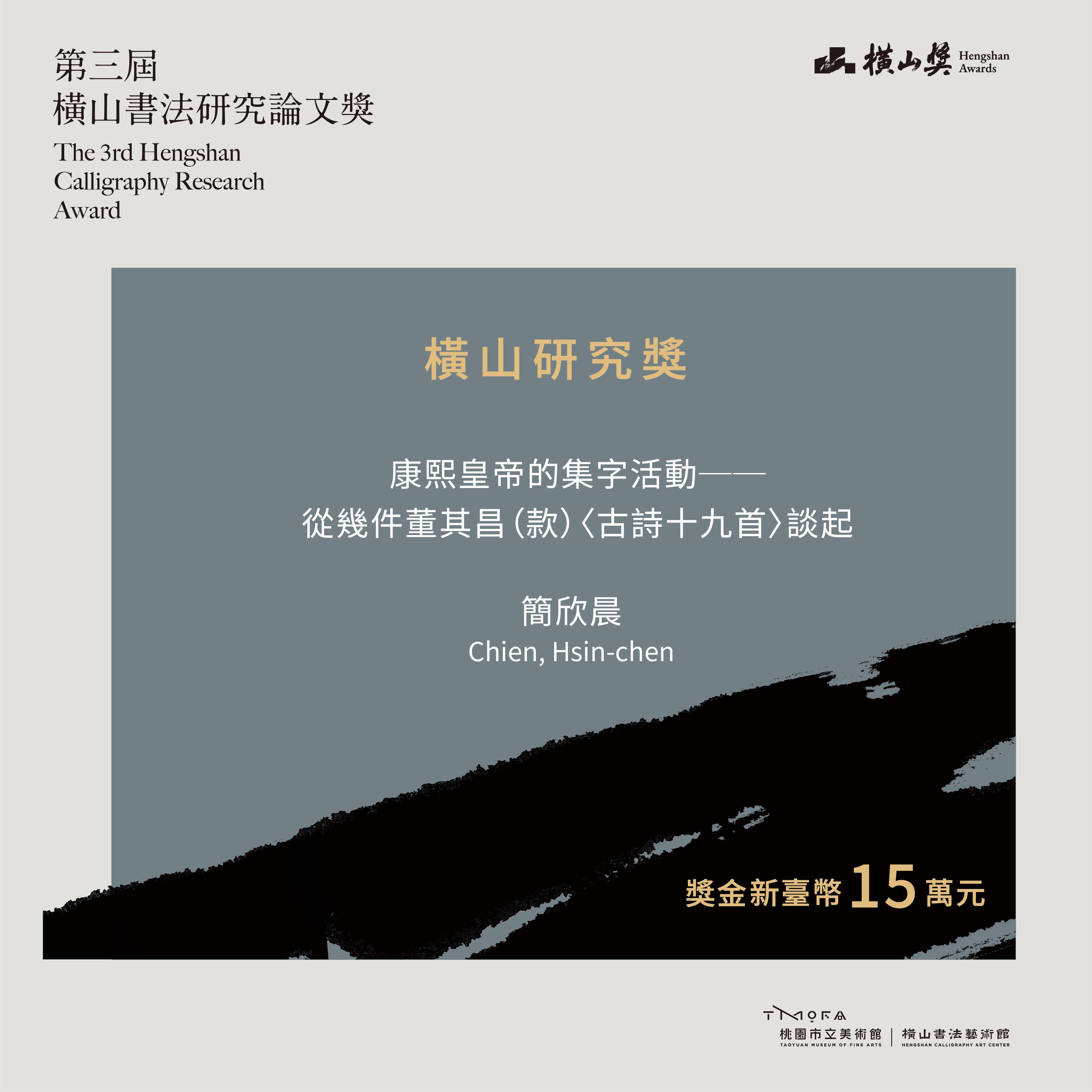 The Grand Prize (NT$150,000) was awarded to Chien Hsin-chen (Taiwan) for the paper The Kangxi Emperor’s Activities Related to Collecting Characters: A Discussion from Several Versions of Nineteen Old Poems in Dong Qichang’s Name. This study presents a sweeping historical perspective and meticulous historical document analysis, illuminating the relationship between the Kangxi Emperor’s character-collecting practices and the legacy of Dong Qichang’s calligraphy. By examining the material and mounting features of various scrolls, the paper resolves long-standing scholarly debates and reveals the complex entanglement between Qing imperial culture and calligraphic tradition—offering both analytical clarity and scholarly depth.